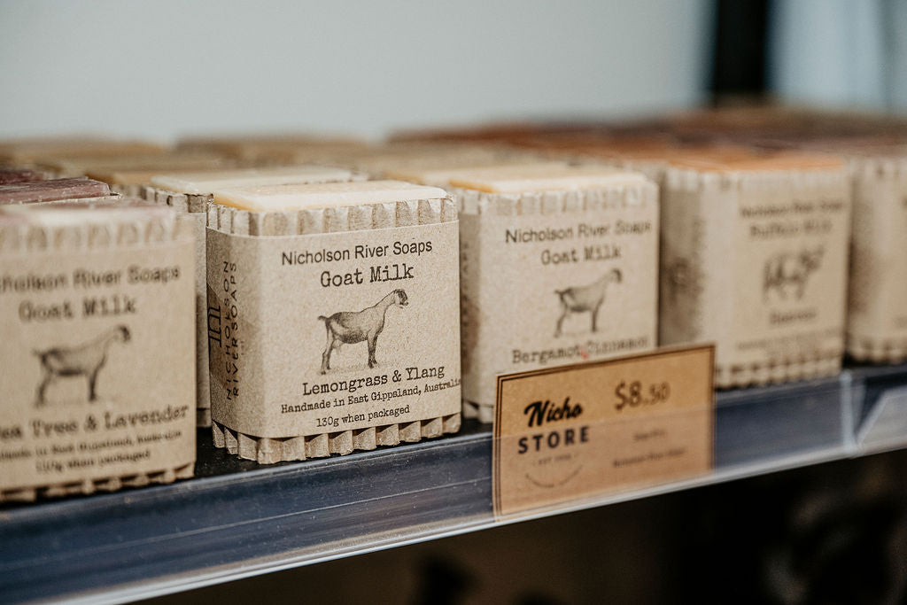 Saponified olive oil, coconut oil, farm fresh goat milk, Australian hemp seed oil, cocoa butter, castor oil, fragrance oil, skin safe colours.